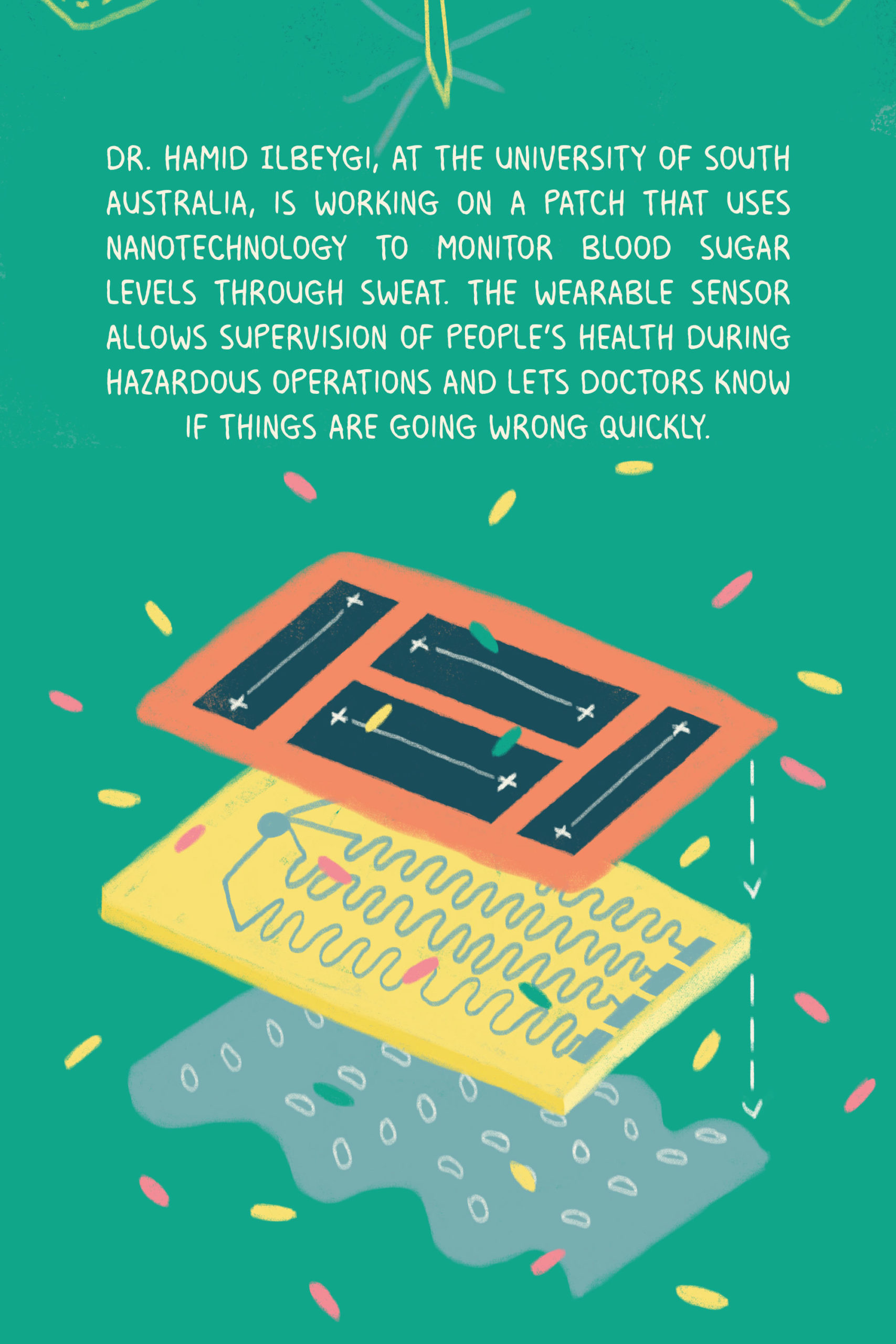 A scrollable comic inspired by Dr. Hamid Ilbeygi’s research into wearable sensors that monitor blood sugar levels through sweat. This piece was commissioned by Australia’s MOD. museum for their 2021 Up Close exhibition. UP CLOSE is an exploration of a spectrum of closeness. Starting inside our bodies, they consider touch and relationships with people and machines before spanning out to the way we move through place and space.